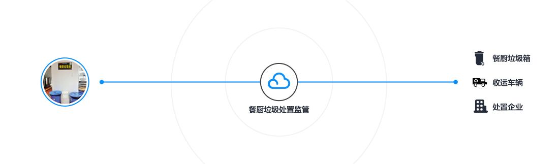 基于移动互联网、物联网、大数据分析等技术,采用餐厨垃圾箱电子标签、收运车辆称重传感器、北斗定位、视频监控、电子标签识别等识别,实现餐厨垃圾的来源、去向、产生量、清运量、处理量的实时在线监管,和对收运过程、收运路线是否符合要求、收运过程是否规范进行监管,达到监督收运过程、规范作业情况、避免二次污染、为主管部门提供经费结算依据的目的。