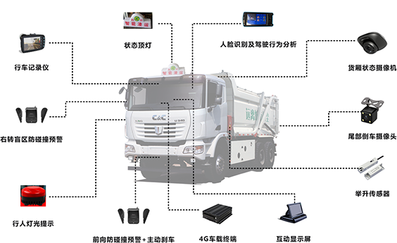 通过加装上述设备,可实时获取车辆是否装货、举升、密闭等状态;通过远程控制下发指令,对严重违规车辆进行远程锁车、限速和限举措施;还可通过智能顶灯,实时展示车辆当前状态(有无核准手续、是否违规时间、违规线路运行),方便公众监督、执法人员现场查处。
