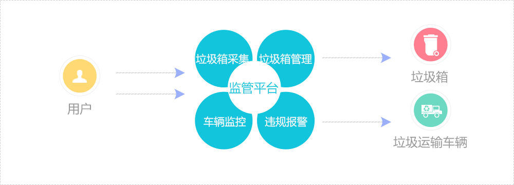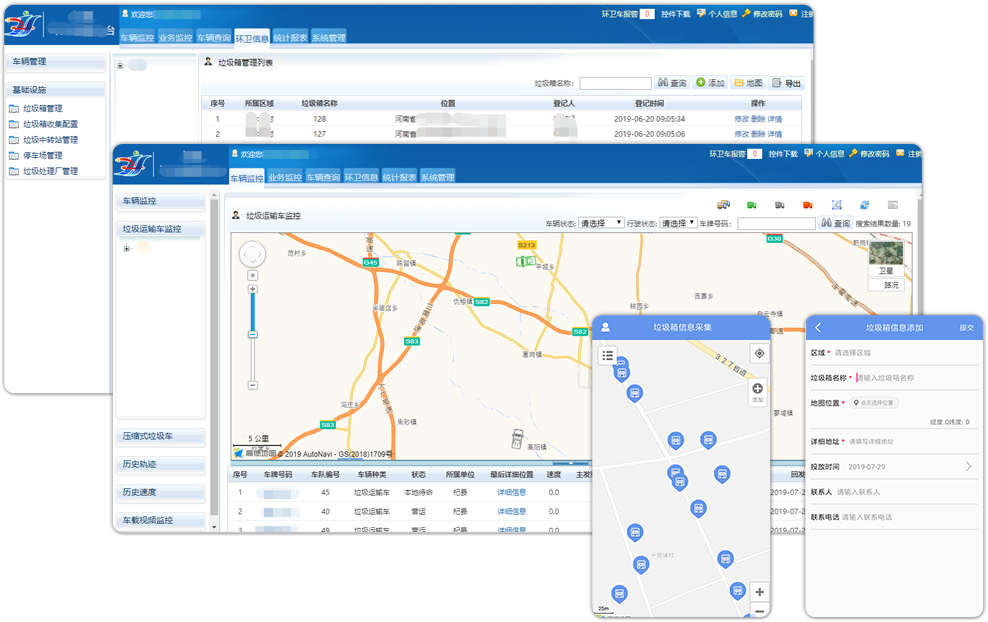 提供垃圾箱位置信息采集、垃圾箱收集分析、垃圾运输车辆监控